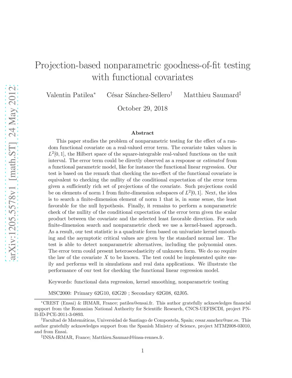 This paper studies the problem of nonparametric testing for the effect of a random functional covariate on a real-valued error term. The covariate takes values in , the Hilbert space of the square-integrable real-valued functions on the unit interval. The error term could be directly observed as a response or \emph{estimated} from a functional parametric model, like for instance the functional linear regression. Our test is based on the remark that checking the no-effect of the functional covariate is equivalent to checking the nullity of the conditional expectation of the error term given a sufficiently rich set of projections of the covariate. Such projections could be on elements of norm 1 from finite-dimension subspaces of . Next, the idea is to search a finite-dimension element of norm 1 that is, in some sense, the least favorable for the null hypothesis. Finally, it remains to perform a nonparametric check of the nullity of the conditional expectation of the error term given the scalar product between the covariate and the selected least favorable direction. For such finite-dimension search and nonparametric check we use a kernel-based approach. As a result, our test statistic is a quadratic form based on univariate kernel smoothing and the asymptotic critical values are given by the standard normal law. The test is able to detect nonparametric alternatives, including the polynomial ones. The error term could present heteroscedasticity of unknown form. We do no require the law of the covariate to be known. The test could be implemented quite easily and performs well in simulations and real data applications. We illustrate the performance of our test for checking the functional linear regression model.