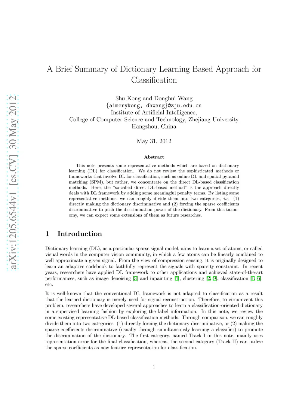 A Brief Summary of Dictionary Learning Based Approach for Classification