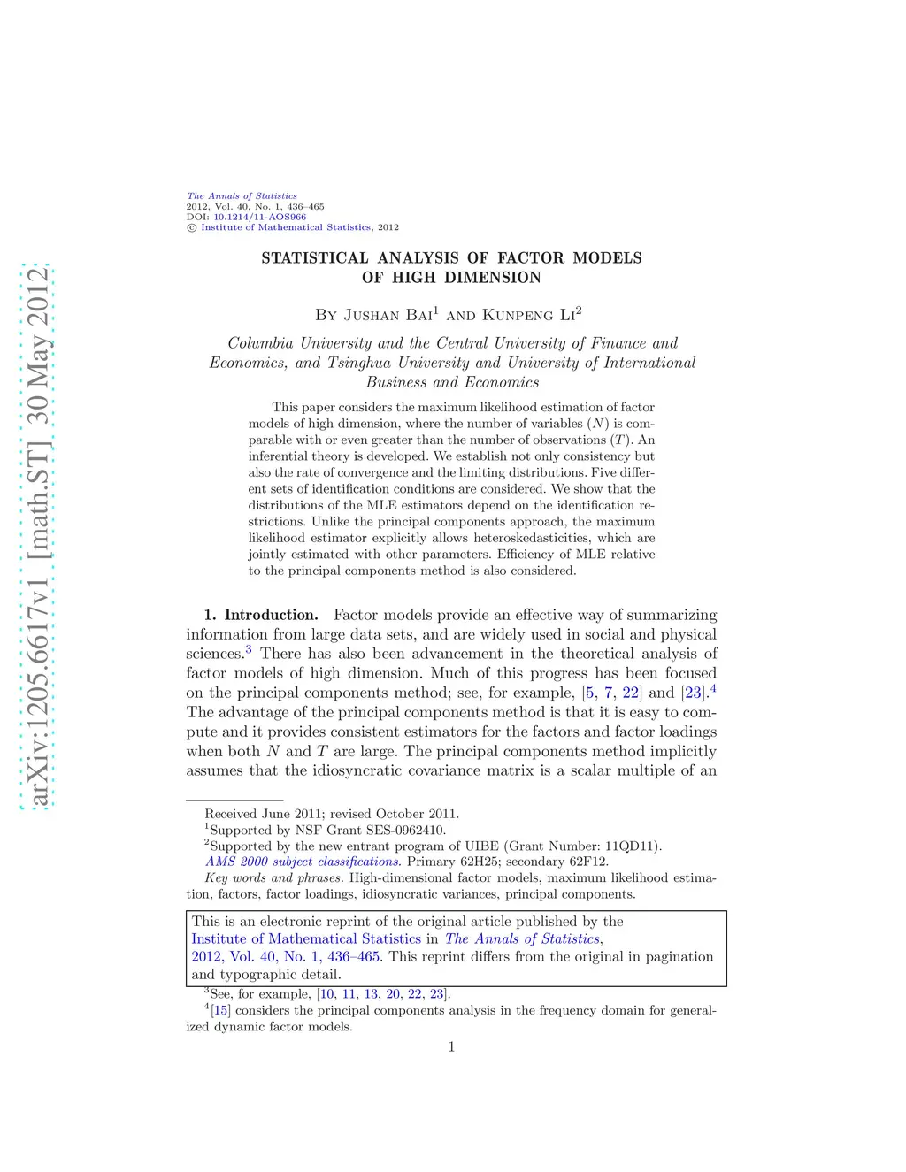 This paper considers the maximum likelihood estimation of factor models of high dimension, where the number of variables (N) is comparable with or even greater than the number of observations (T). An inferential theory is developed. We establish not only consistency but also the rate of convergence and the limiting distributions. Five different sets of identification conditions are considered. We show that the distributions of the MLE estimators depend on the identification restrictions. Unlike the principal components approach, the maximum likelihood estimator explicitly allows heteroskedasticities, which are jointly estimated with other parameters. Efficiency of MLE relative to the principal components method is also considered.