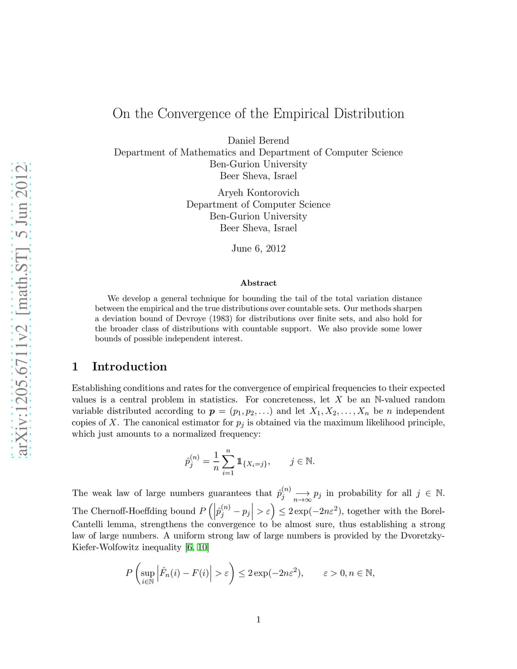 We develop a general technique for bounding the tail of the total variation distance between the empirical and the true distributions over countable sets. Our methods sharpen a deviation bound of Devroye (1983) for distributions over finite sets, and also hold for the broader class of distributions with countable support. We also provide some lower bounds of possible independent interest.