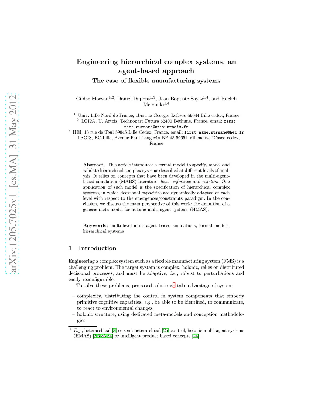 This article introduces a formal model to specify, model and validate hierarchical complex systems described at different levels of analysis. It relies on concepts that have been developed in the multi-agent-based simulation (MABS) literature: level, influence and reaction. One application of such model is the specification of hierarchical complex systems, in which decisional capacities are dynamically adapted at each level with respect to the emergences/constraints paradigm. In the conclusion, we discuss the main perspective of this work: the definition of a generic meta-model for holonic multi-agent systems (HMAS).