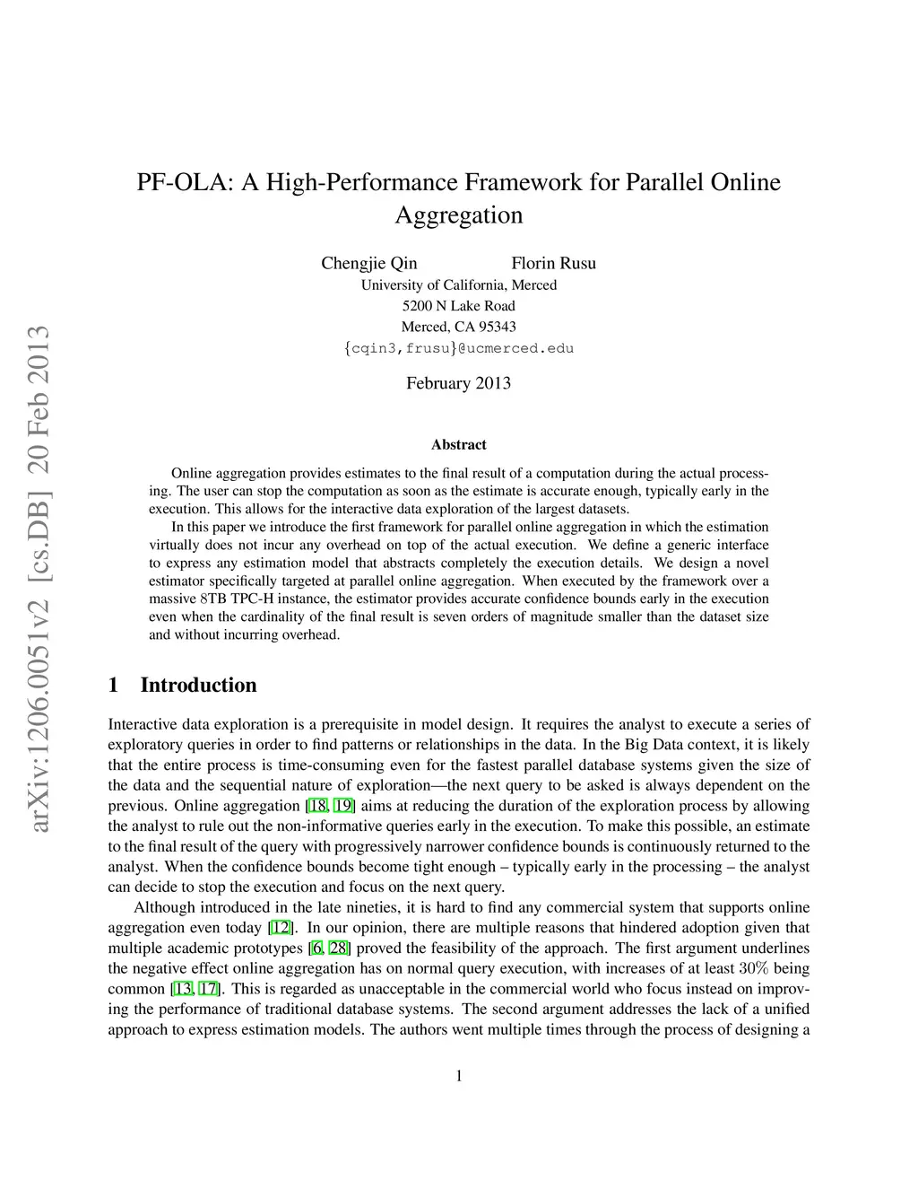 PF-OLA: A High-Performance Framework for Parallel On-Line Aggregation