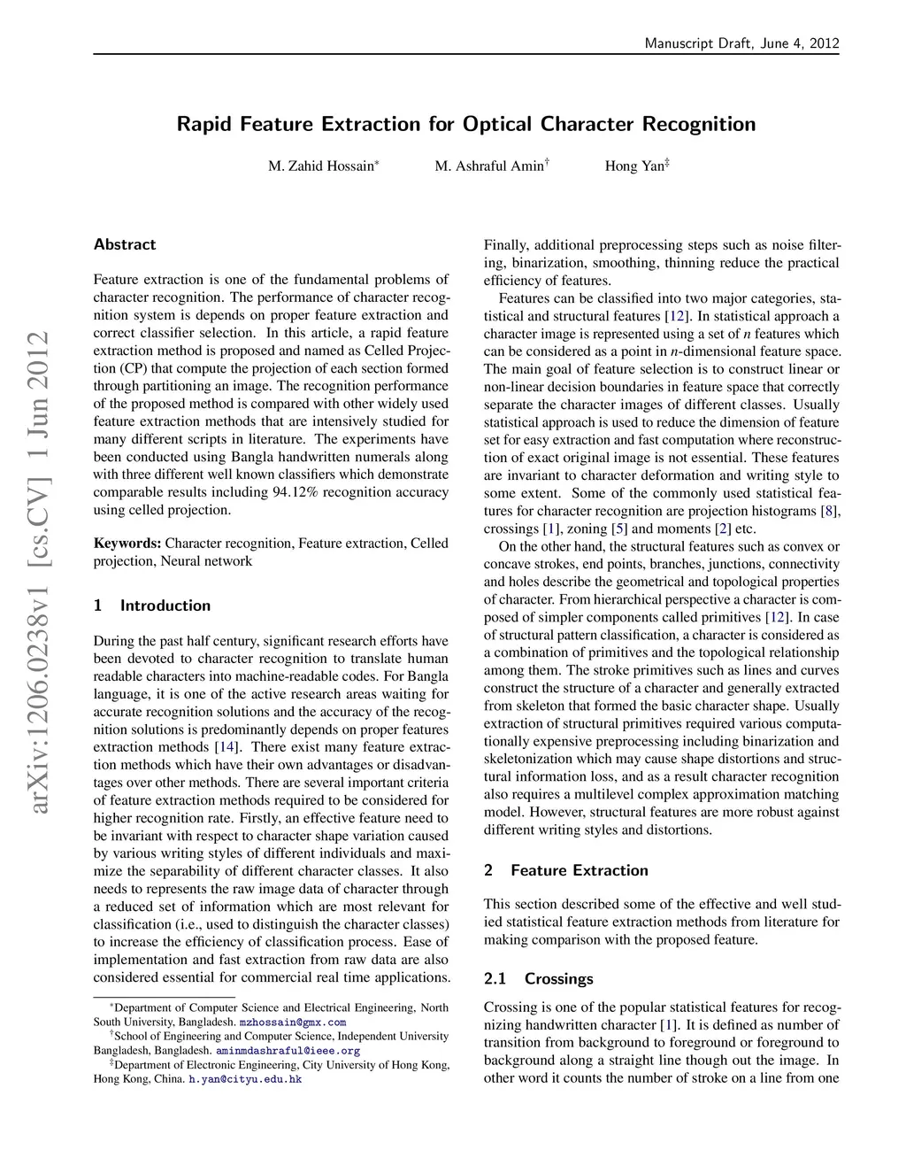Rapid Feature Extraction for Optical Character Recognition