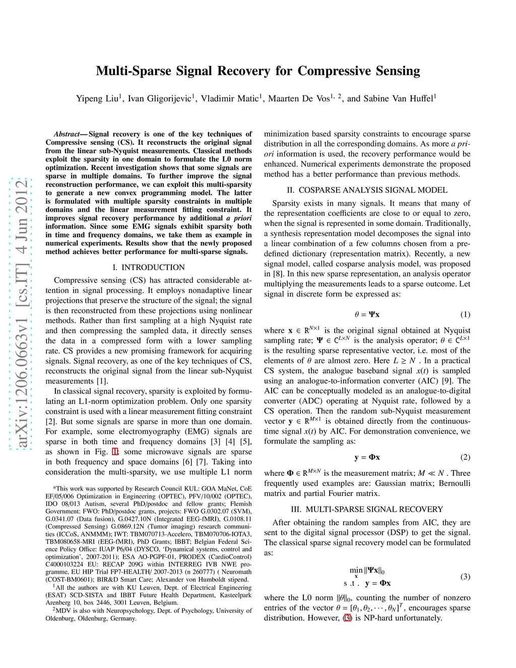 Multi-Sparse Signal Recovery for Compressive Sensing