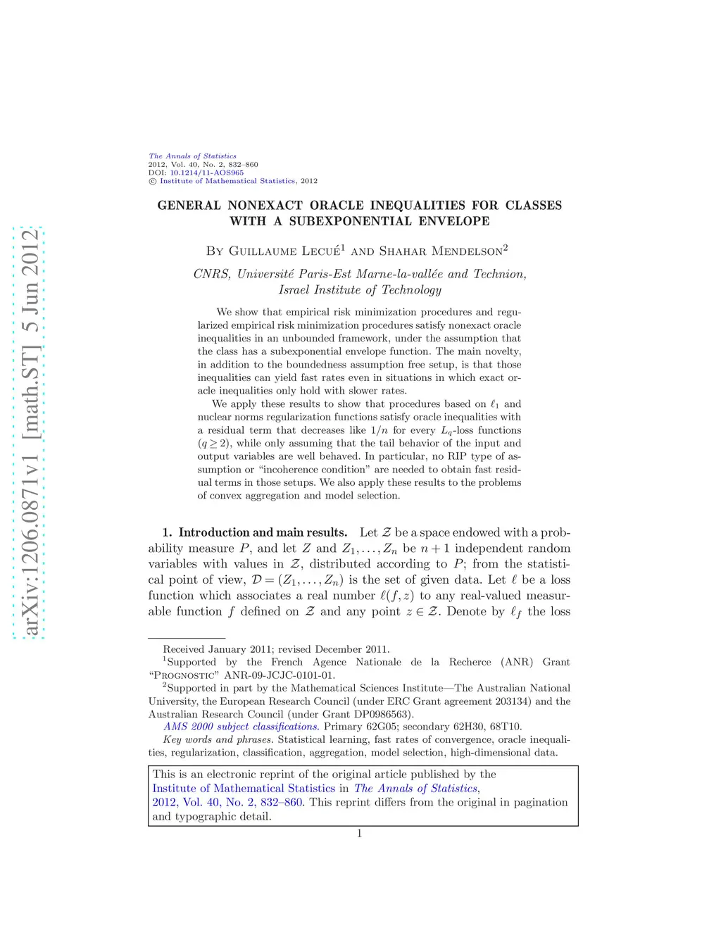 We show that empirical risk minimization procedures and regularized empirical risk minimization procedures satisfy nonexact oracle inequalities in an unbounded framework, under the assumption that the class has a subexponential envelope function. The main novelty, in addition to the boundedness assumption free setup, is that those inequalities can yield fast rates even in situations in which exact oracle inequalities only hold with slower rates. We apply these results to show that procedures based on and nuclear norms regularization functions satisfy oracle inequalities with a residual term that decreases like for every -loss functions (), while only assuming that the tail behavior of the input and output variables are well behaved. In particular, no RIP type of assumption or "incoherence condition" are needed to obtain fast residual terms in those setups. We also apply these results to the problems of convex aggregation and model selection.