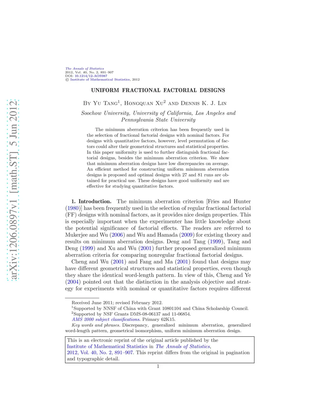 Uniform fractional factorial designs