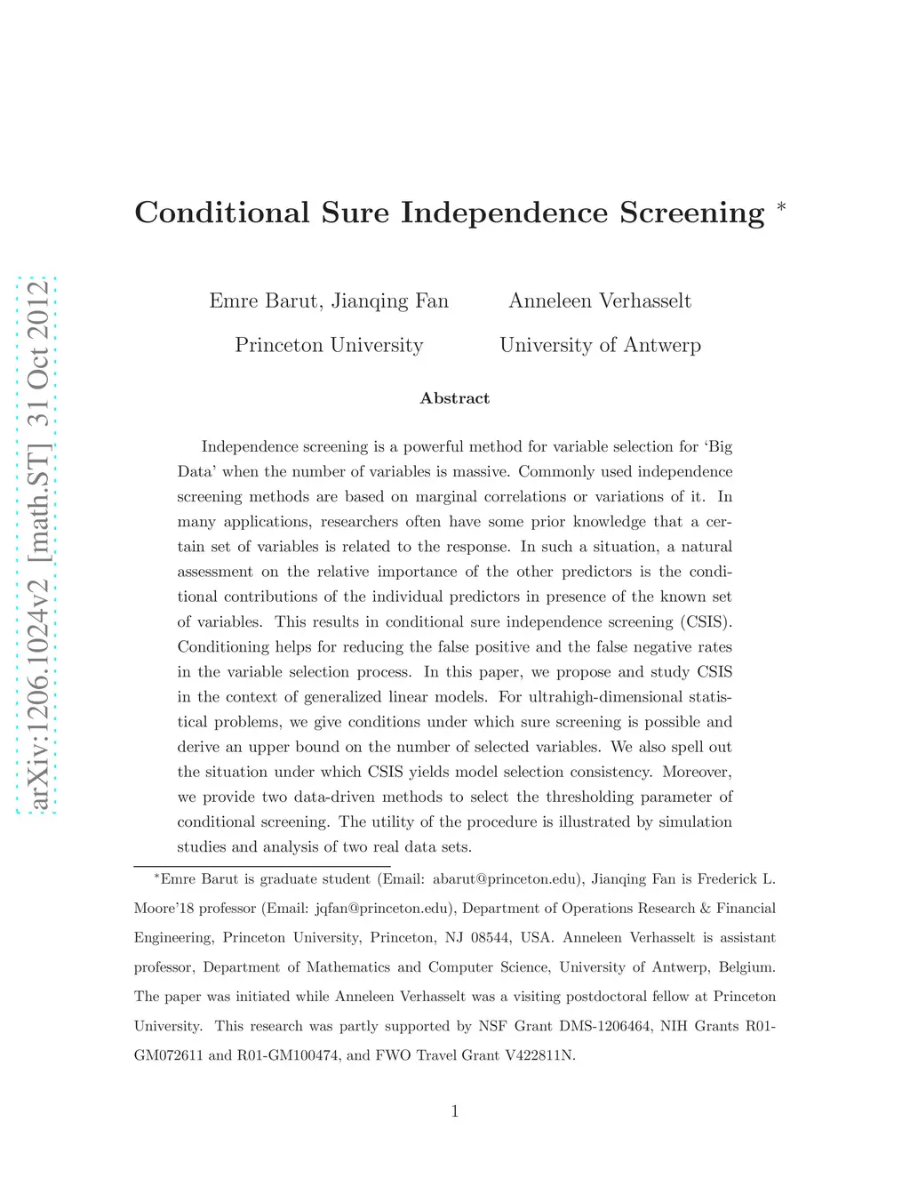 Conditional Sure Independence Screening