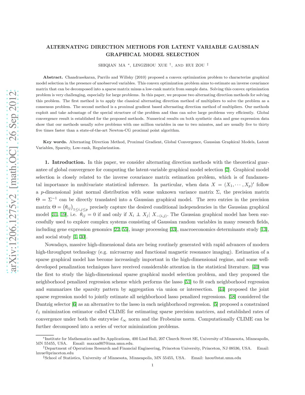 Alternating Direction Methods for Latent Variable Gaussian Graphical