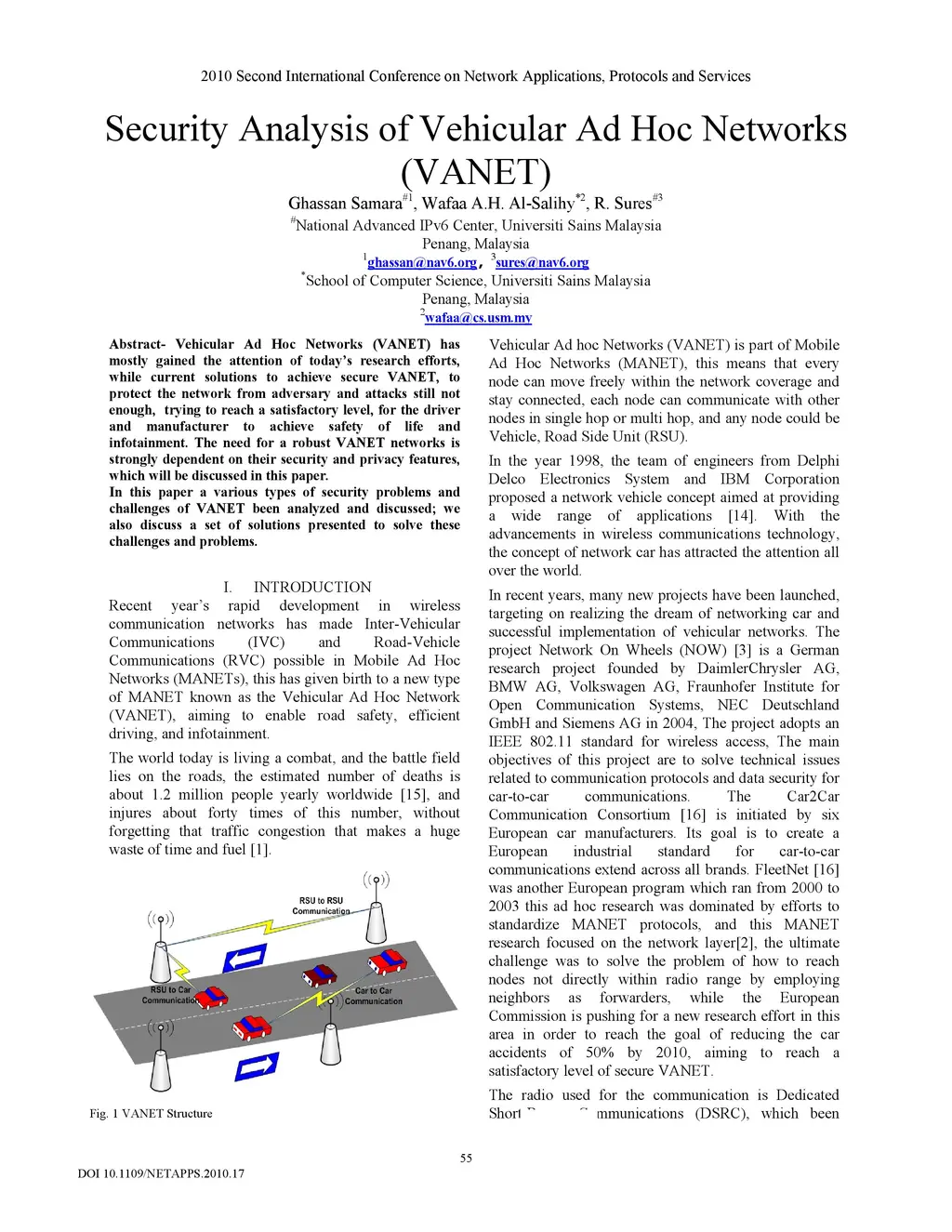 Security Analysis of Vehicular Ad Hoc Networks (VANET)