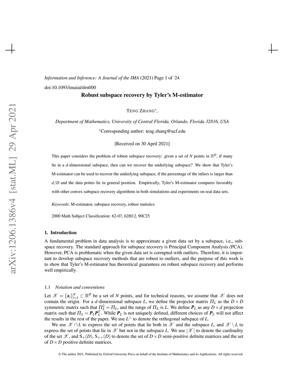 This paper considers the problem of robust subspace recovery: given a set of points in , if many lie in a -dimensional subspace, then can we recover the underlying subspace? We show that Tyler's M-estimator can be used to recover the underlying subspace, if the percentage of the inliers is larger than and the data points lie in general position. Empirically, Tyler's M-estimator compares favorably with other convex subspace recovery algorithms in both simulations and experiments on real data sets.