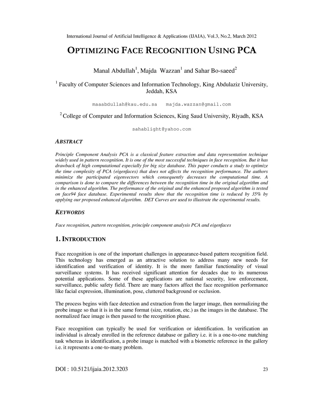 Optimizing Face Recognition Using PCA
