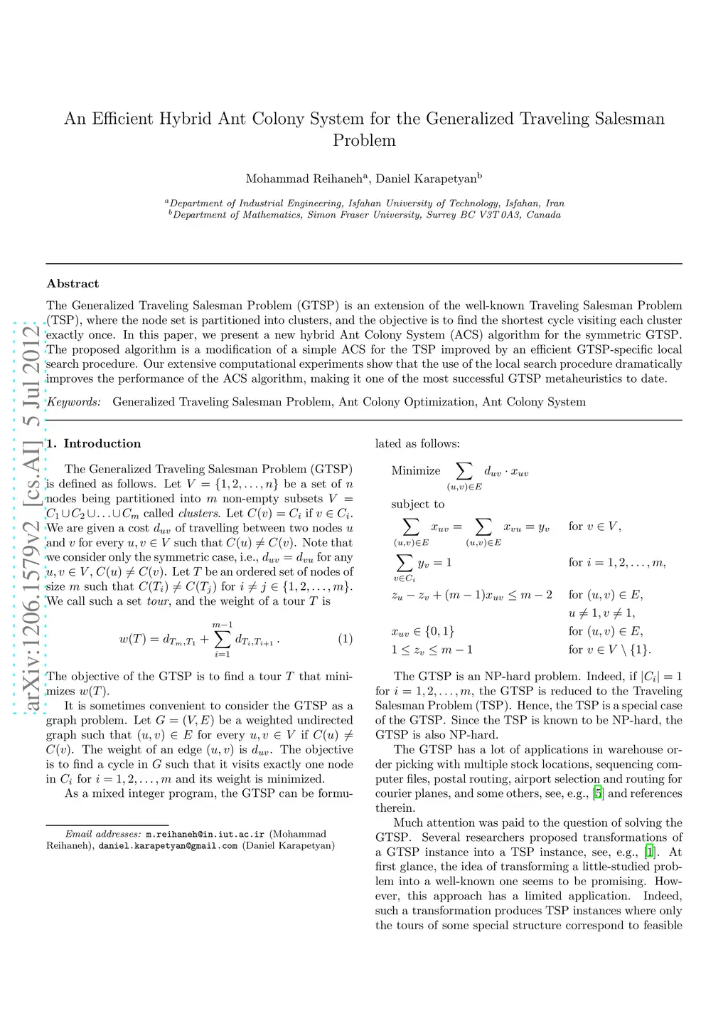 An Efficient Hybrid Ant Colony System for the Generalized Traveling