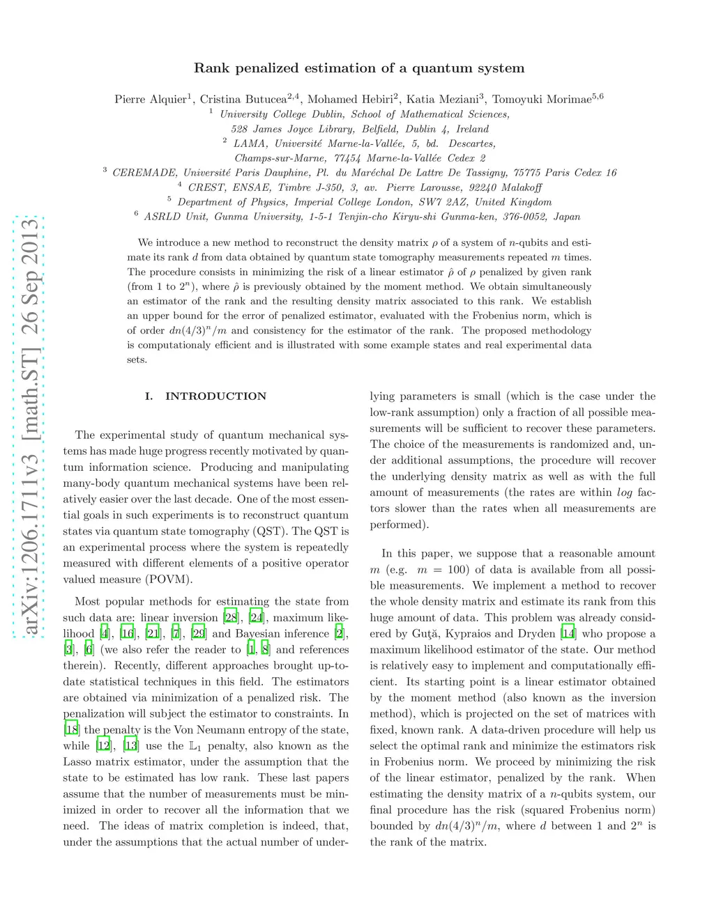 Rank penalized estimation of a quantum system