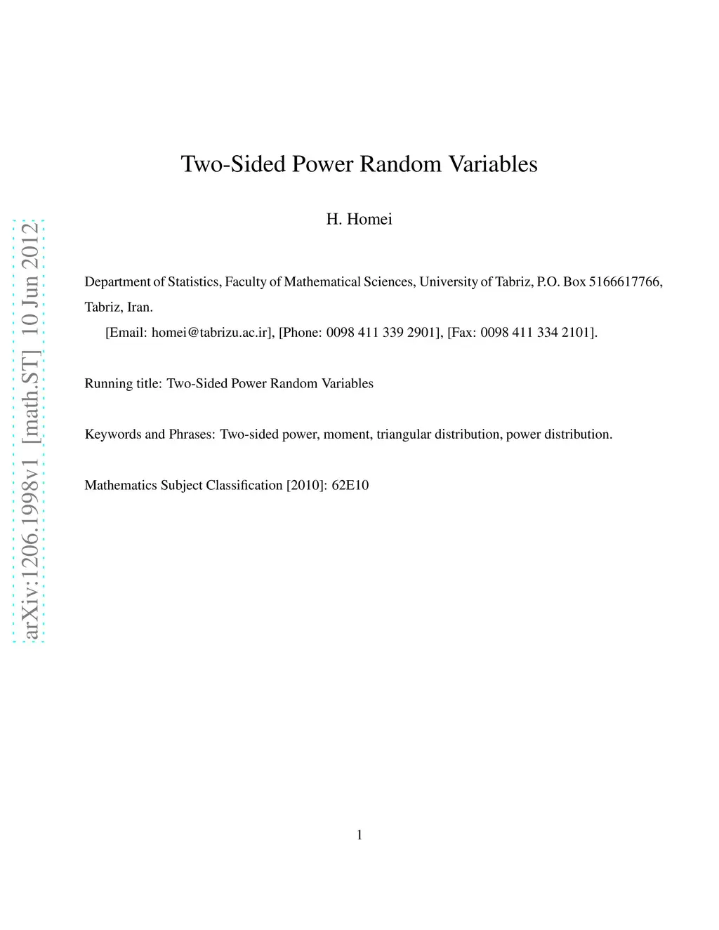 Two-Sided Power Random Variables