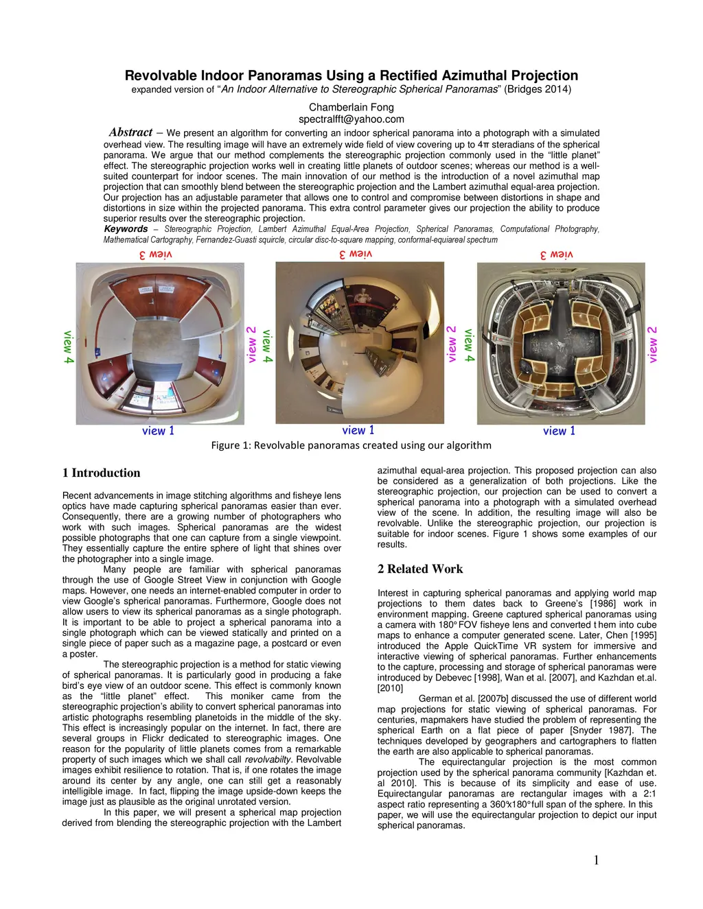 Revolvable Indoor Panoramas Using a Rectified Azimuthal Projection