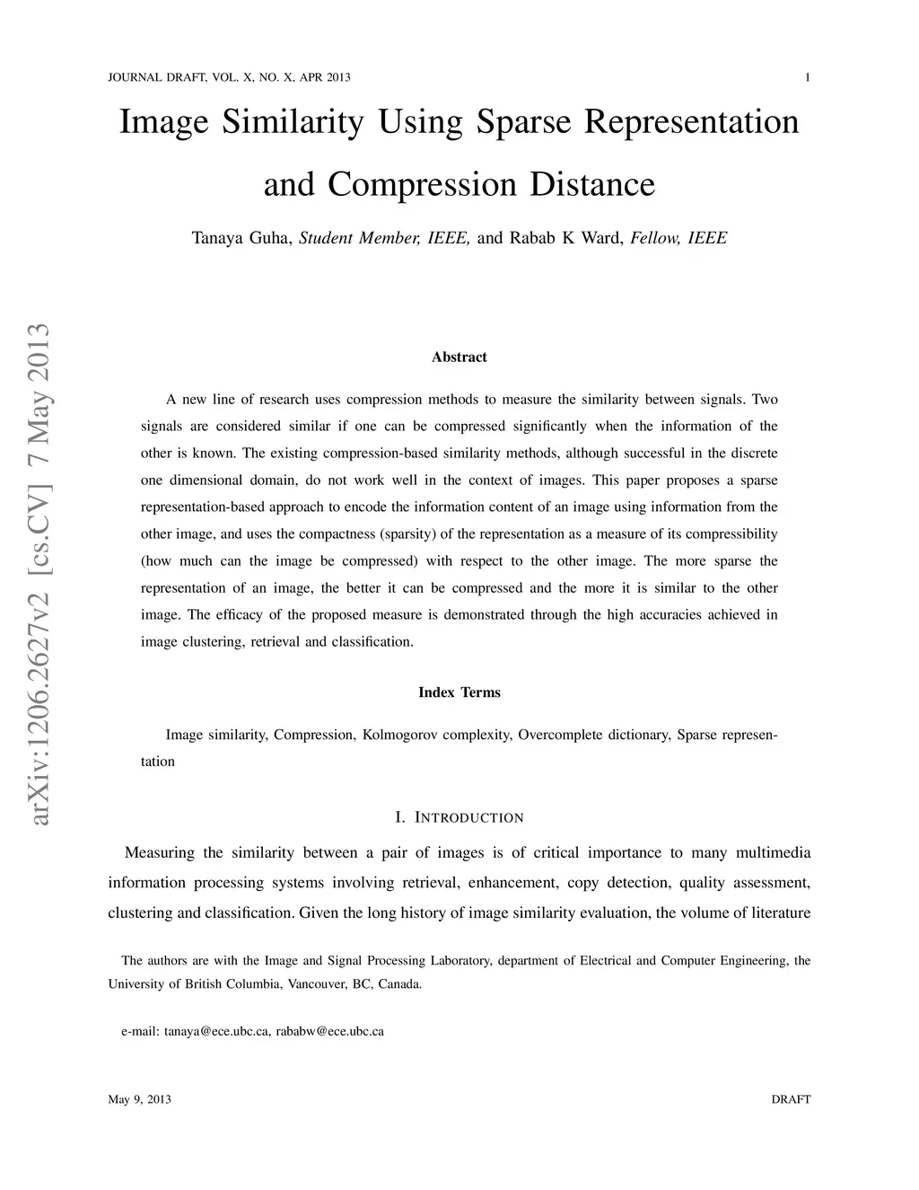 Image Similarity Using Sparse Representation and Compression Distance