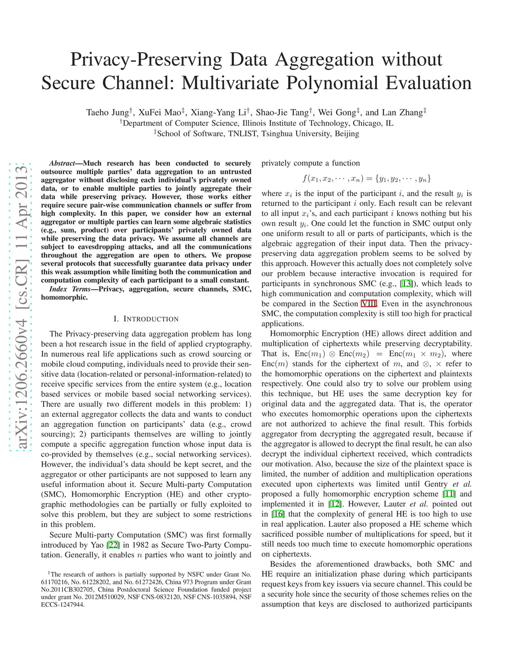 Data Aggregation without Secure Channel: How to Evaluate a Multivariate