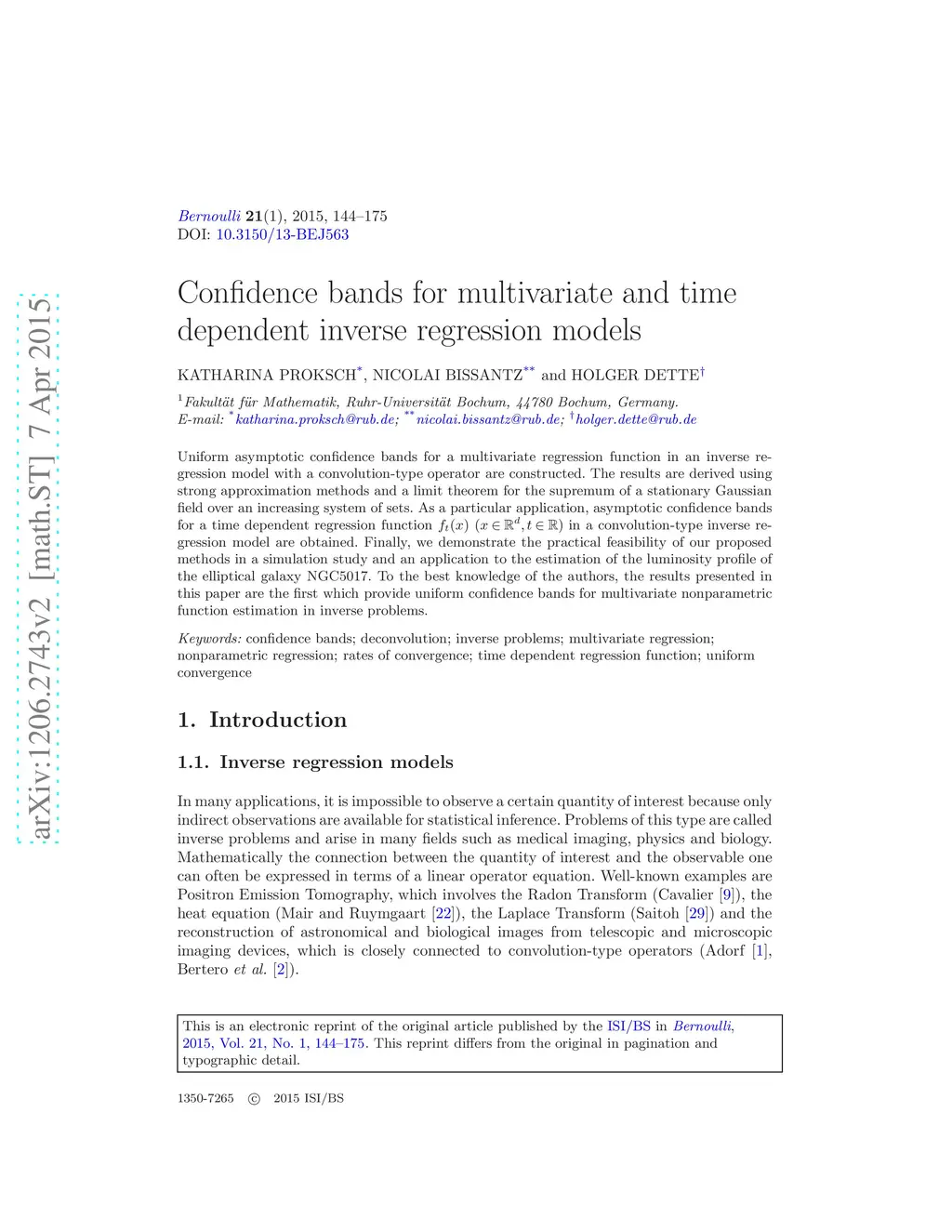 Confidence bands for multivariate and time dependent inverse regression