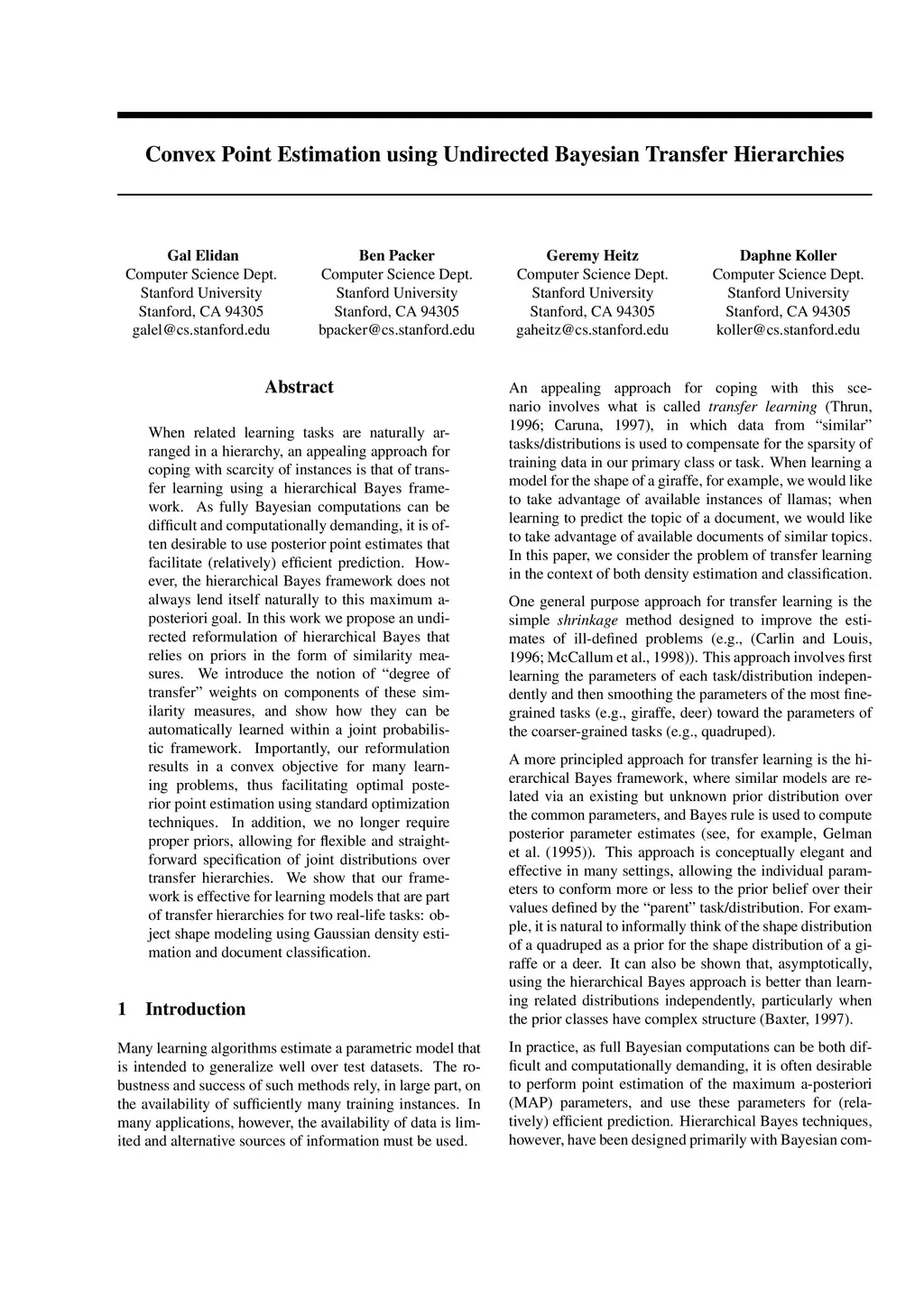 Convex Point Estimation using Undirected Bayesian Transfer Hierarchies