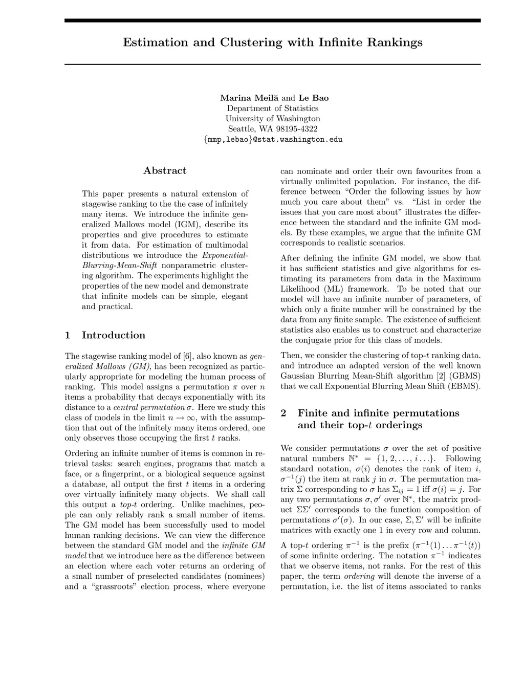 Estimation and Clustering with Infinite Rankings
