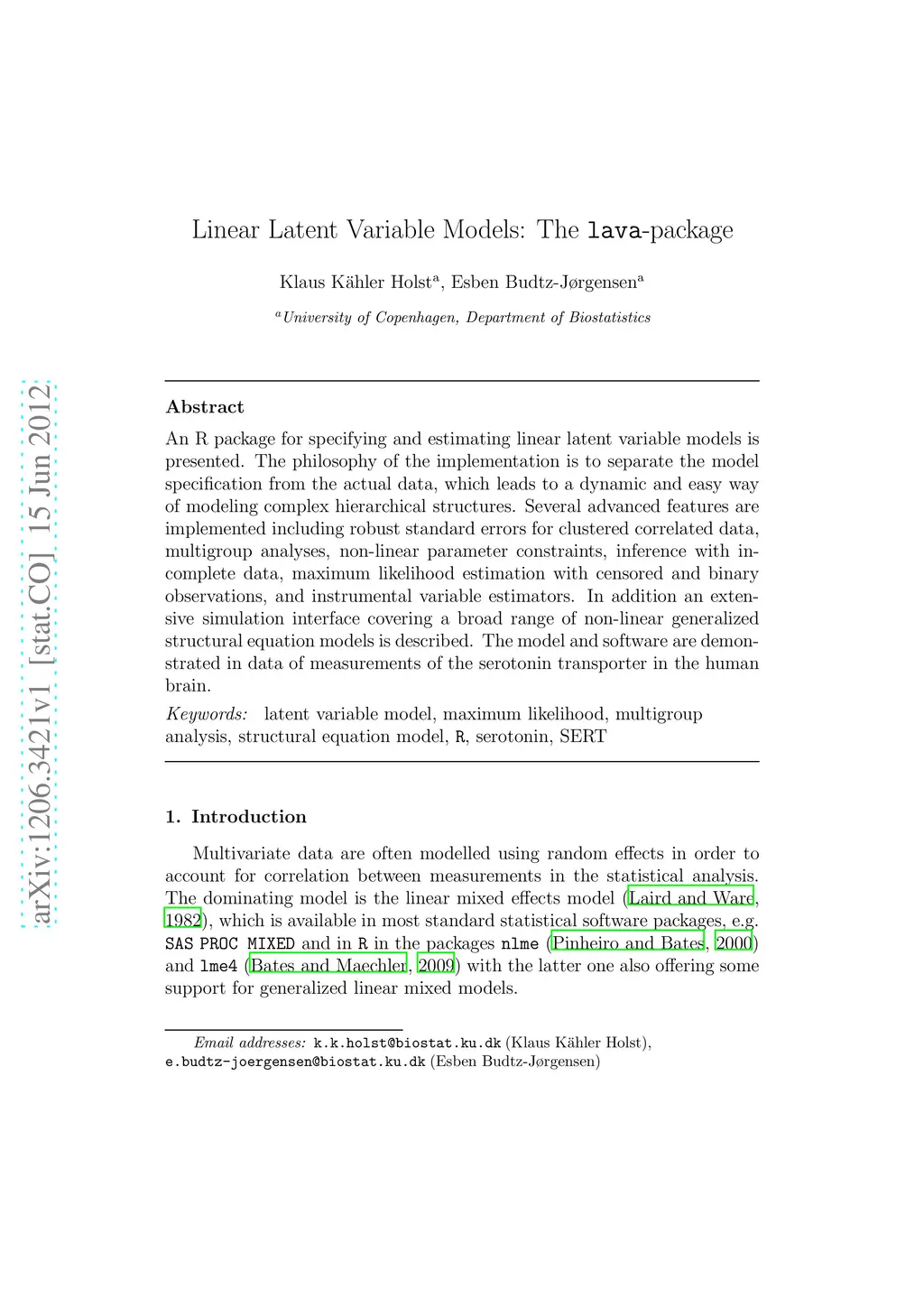 Linear Latent Variable Models: The lava-package