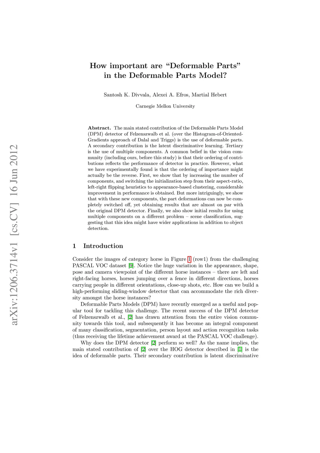 The main stated contribution of the Deformable Parts Model (DPM) detector of Felzenszwalb et al. (over the Histogram-of-Oriented-Gradients approach of Dalal and Triggs) is the use of deformable parts. A secondary contribution is the latent discriminative learning. Tertiary is the use of multiple components. A common belief in the vision community (including ours, before this study) is that their ordering of contributions reflects the performance of detector in practice. However, what we have experimentally found is that the ordering of importance might actually be the reverse. First, we show that by increasing the number of components, and switching the initialization step from their aspect-ratio, left-right flipping heuristics to appearance-based clustering, considerable improvement in performance is obtained. But more intriguingly, we show that with these new components, the part deformations can now be completely switched off, yet obtaining results that are almost on par with the original DPM detector. Finally, we also show initial results for using multiple components on a different problem -- scene classification, suggesting that this idea might have wider applications in addition to object detection.