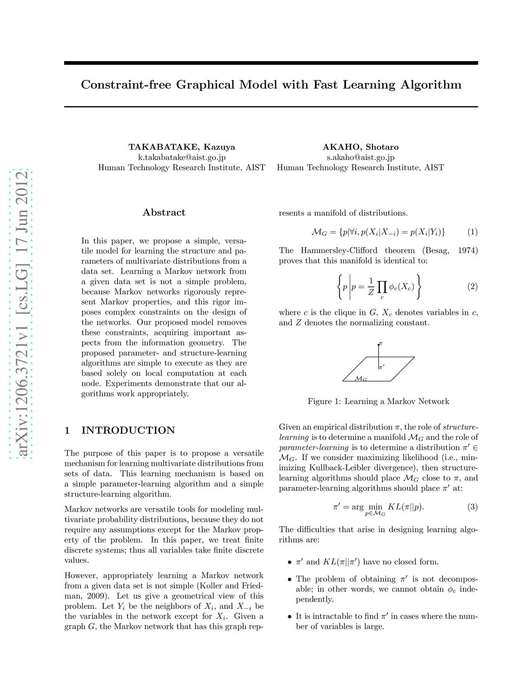 In this paper, we propose a simple, versatile model for learning the structure and parameters of multivariate distributions from a data set. Learning a Markov network from a given data set is not a simple problem, because Markov networks rigorously represent Markov properties, and this rigor imposes complex constraints on the design of the networks. Our proposed model removes these constraints, acquiring important aspects from the information geometry. The proposed parameter- and structure-learning algorithms are simple to execute as they are based solely on local computation at each node. Experiments demonstrate that our algorithms work appropriately.