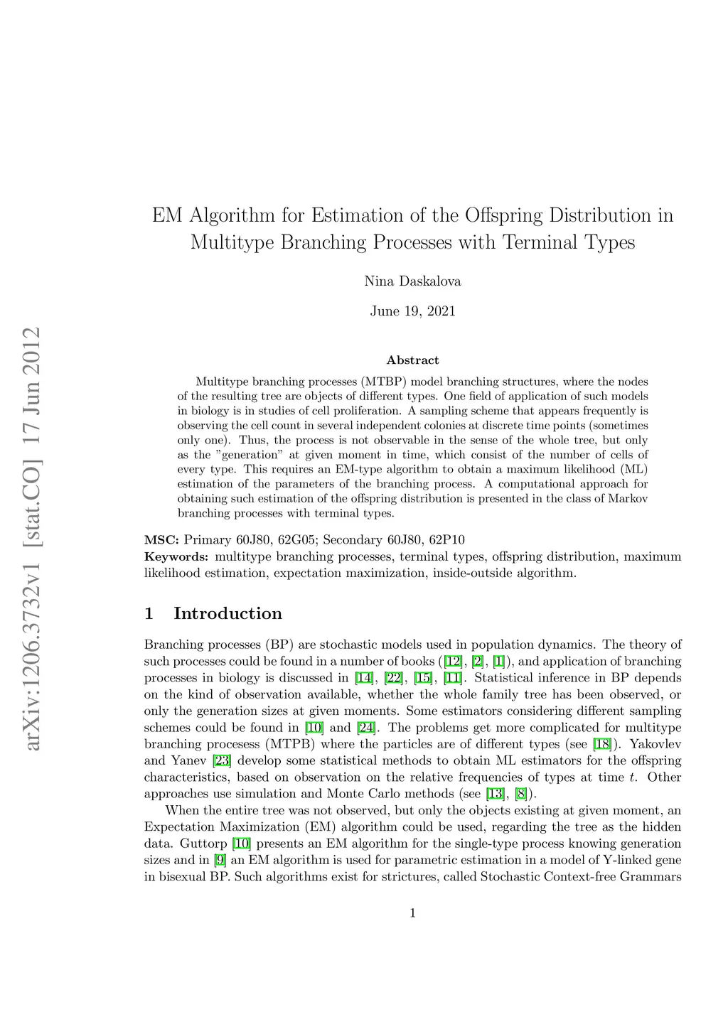 EM Algorithm for Estimation of the Offspring Distribution in Multitype