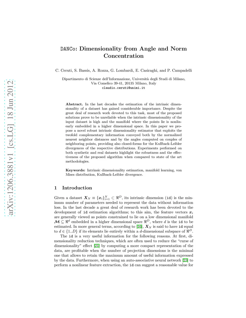 DANCo: Dimensionality from Angle and Norm Concentration