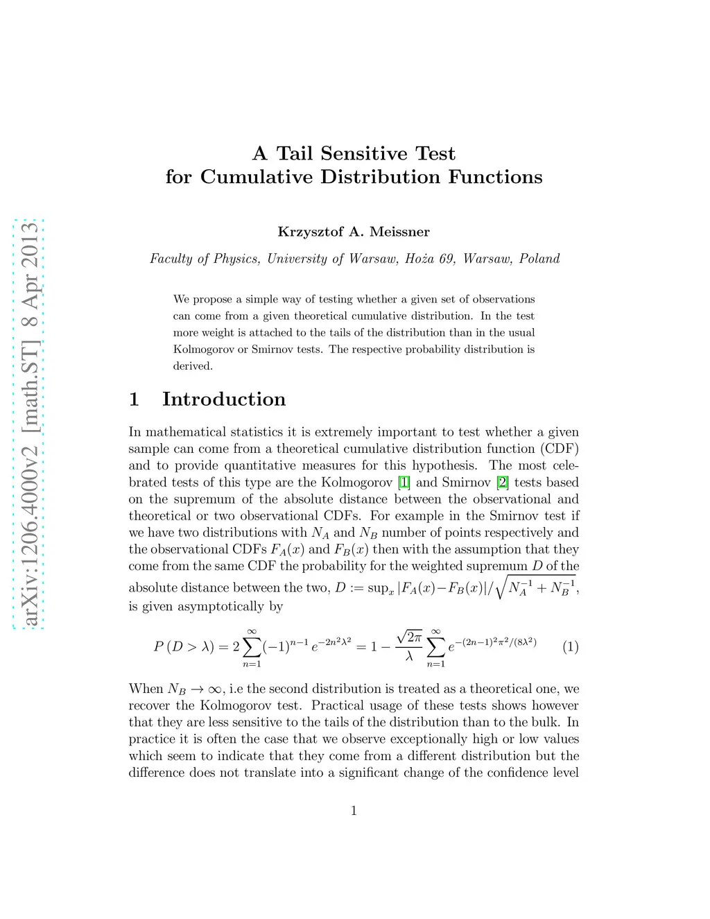 A Tail Sensitive Test for Cumulative Distribution Functions