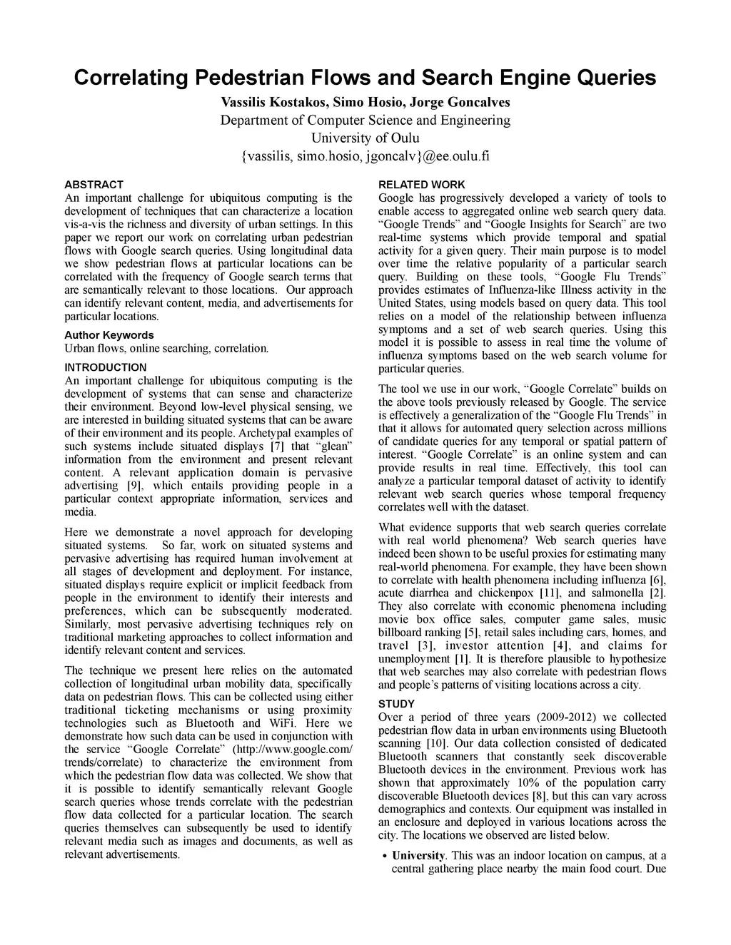 An important challenge for ubiquitous computing is the development of techniques that can characterize a location vis-a-vis the richness and diversity of urban settings. In this paper we report our work on correlating urban pedestrian flows with Google search queries. Using longitudinal data we show pedestrian flows at particular locations can be correlated with the frequency of Google search terms that are semantically relevant to those locations. Our approach can identify relevant content, media, and advertisements for particular locations.