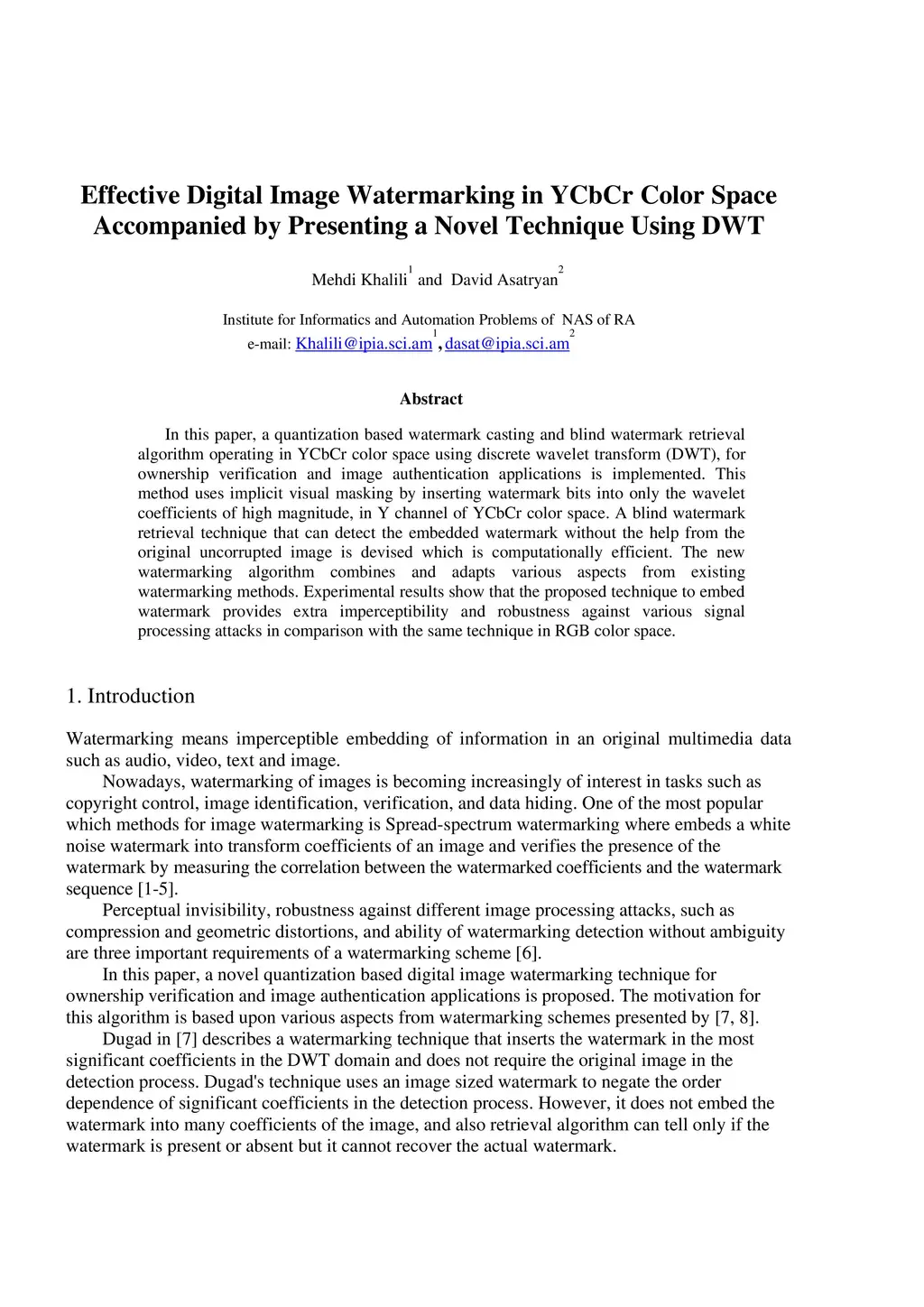 Effective Digital Image Watermarking in YCbCr Color Space Accompanied by