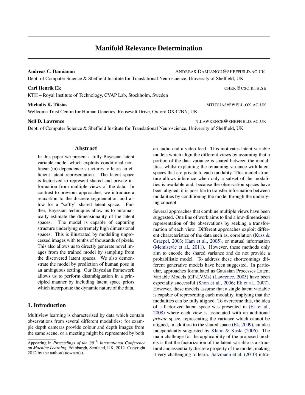 Manifold Relevance Determination