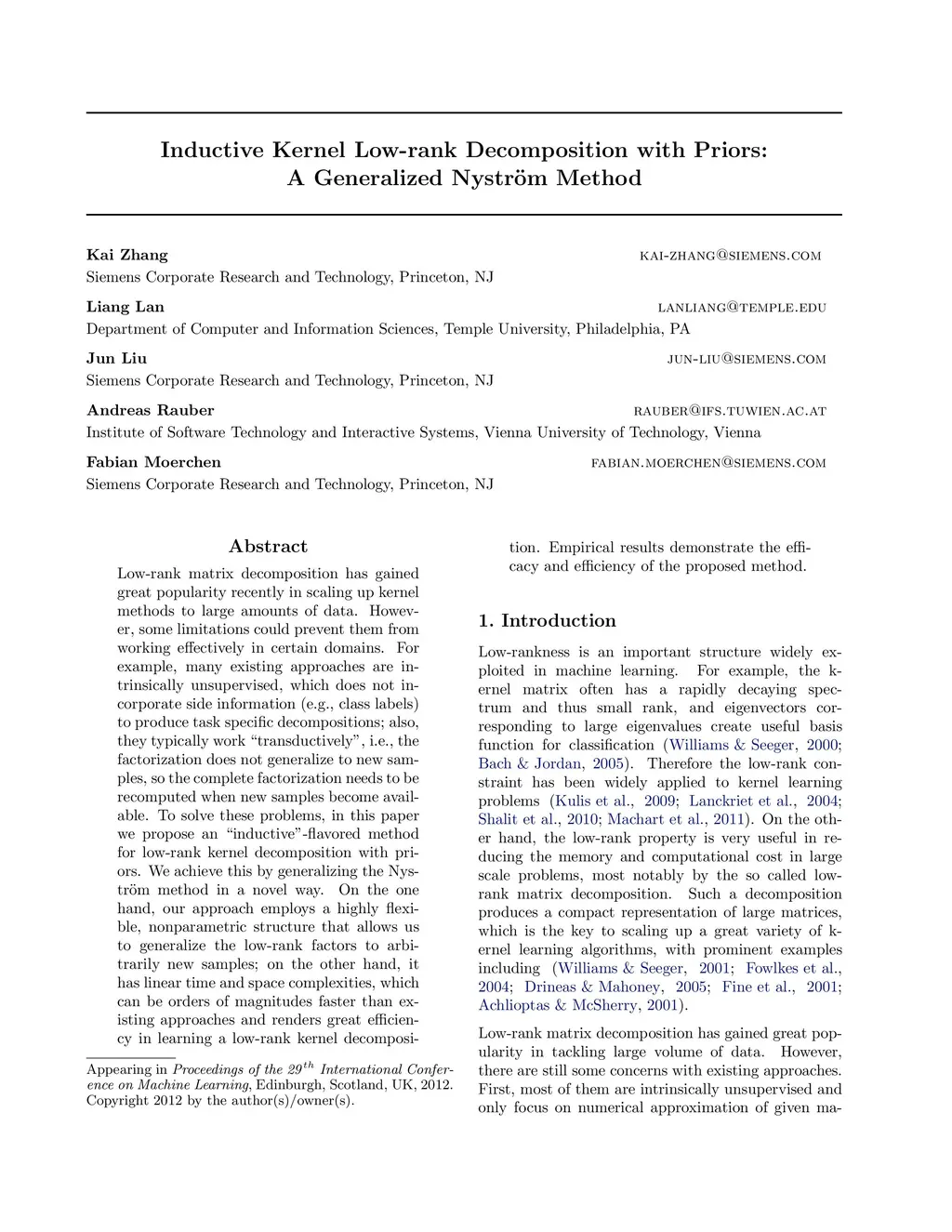 Inductive Kernel Low-rank Decomposition with Priors: A Generalized
