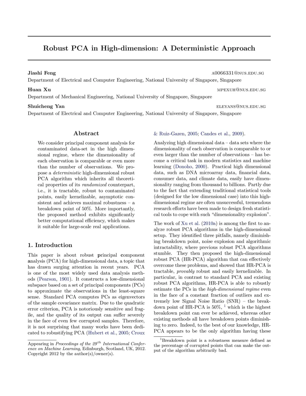 We consider principal component analysis for contaminated data-set in the high dimensional regime, where the dimensionality of each observation is comparable or even more than the number of observations. We propose a deterministic high-dimensional robust PCA algorithm which inherits all theoretical properties of its randomized counterpart, i.e., it is tractable, robust to contaminated points, easily kernelizable, asymptotic consistent and achieves maximal robustness -- a breakdown point of 50%. More importantly, the proposed method exhibits significantly better computational efficiency, which makes it suitable for large-scale real applications.