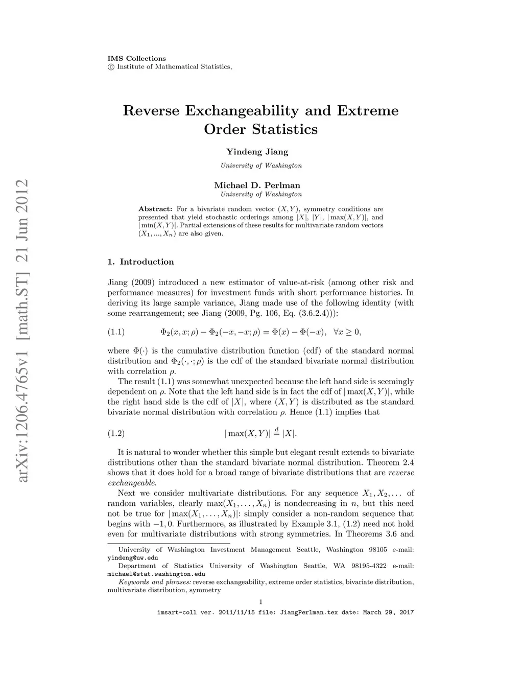 Reverse Exchangeability and Extreme Order Statistics