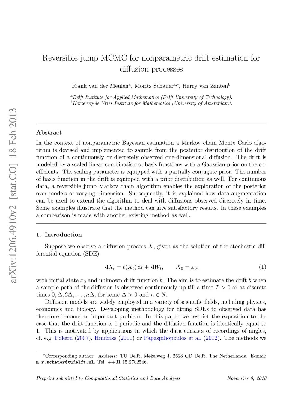 In the context of nonparametric Bayesian estimation a Markov chain Monte Carlo algorithm is devised and implemented to sample from the posterior distribution of the drift function of a continuously or discretely observed one-dimensional diffusion. The drift is modeled by a scaled linear combination of basis functions with a Gaussian prior on the coefficients. The scaling parameter is equipped with a partially conjugate prior. The number of basis function in the drift is equipped with a prior distribution as well. For continuous data, a reversible jump Markov chain algorithm enables the exploration of the posterior over models of varying dimension. Subsequently, it is explained how data-augmentation can be used to extend the algorithm to deal with diffusions observed discretely in time. Some examples illustrate that the method can give satisfactory results. In these examples a comparison is made with another existing method as well.