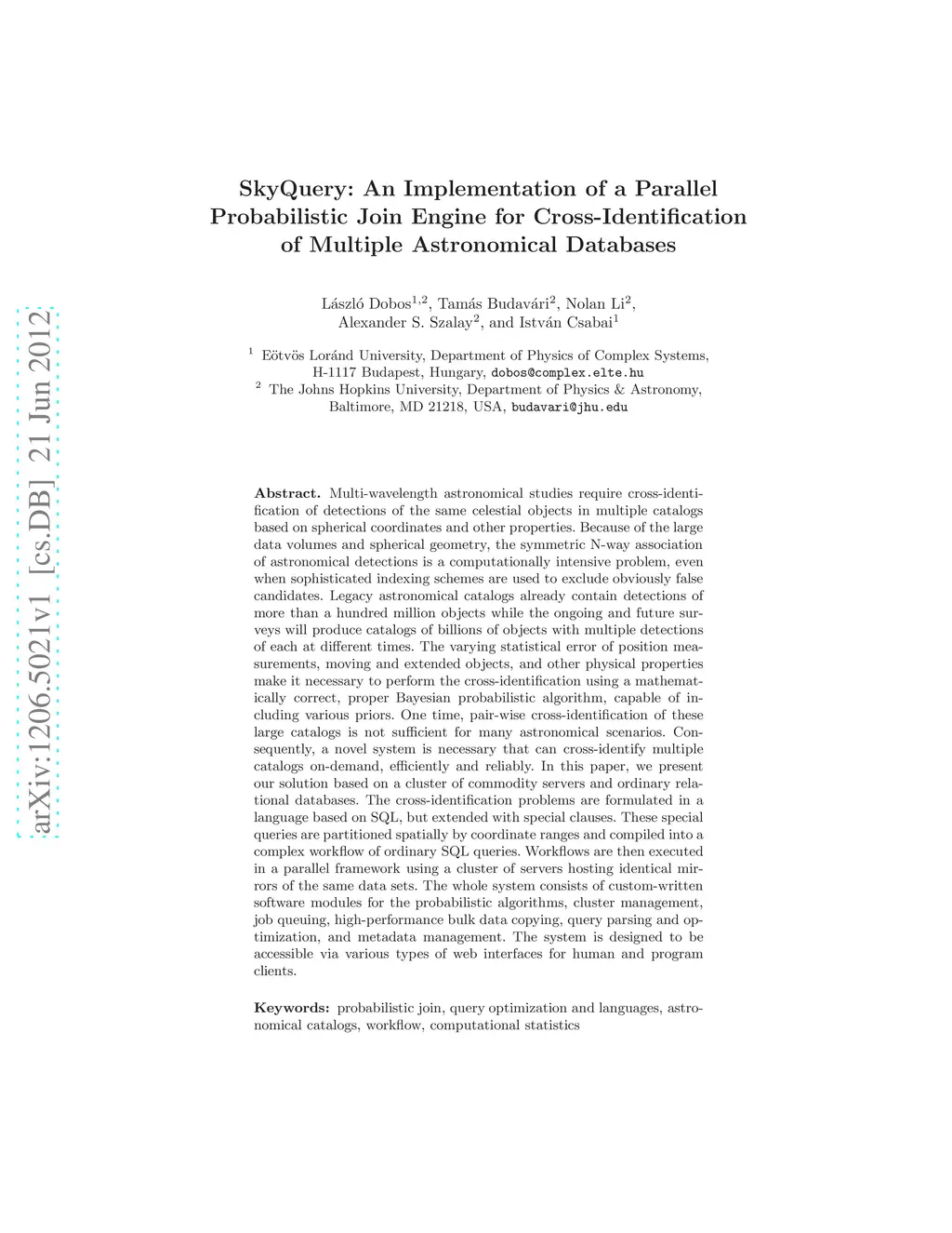 SkyQuery: An Implementation of a Parallel Probabilistic Join Engine for