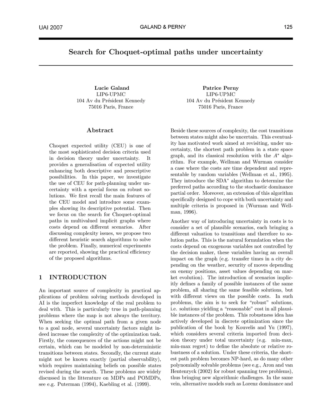 Choquet expected utility (CEU) is one of the most sophisticated decision criteria used in decision theory under uncertainty. It provides a generalisation of expected utility enhancing both descriptive and prescriptive possibilities. In this paper, we investigate the use of CEU for path-planning under uncertainty with a special focus on robust solutions. We first recall the main features of the CEU model and introduce some examples showing its descriptive potential. Then we focus on the search for Choquet-optimal paths in multivalued implicit graphs where costs depend on different scenarios. After discussing complexity issues, we propose two different heuristic search algorithms to solve the problem. Finally, numerical experiments are reported, showing the practical efficiency of the proposed algorithms.