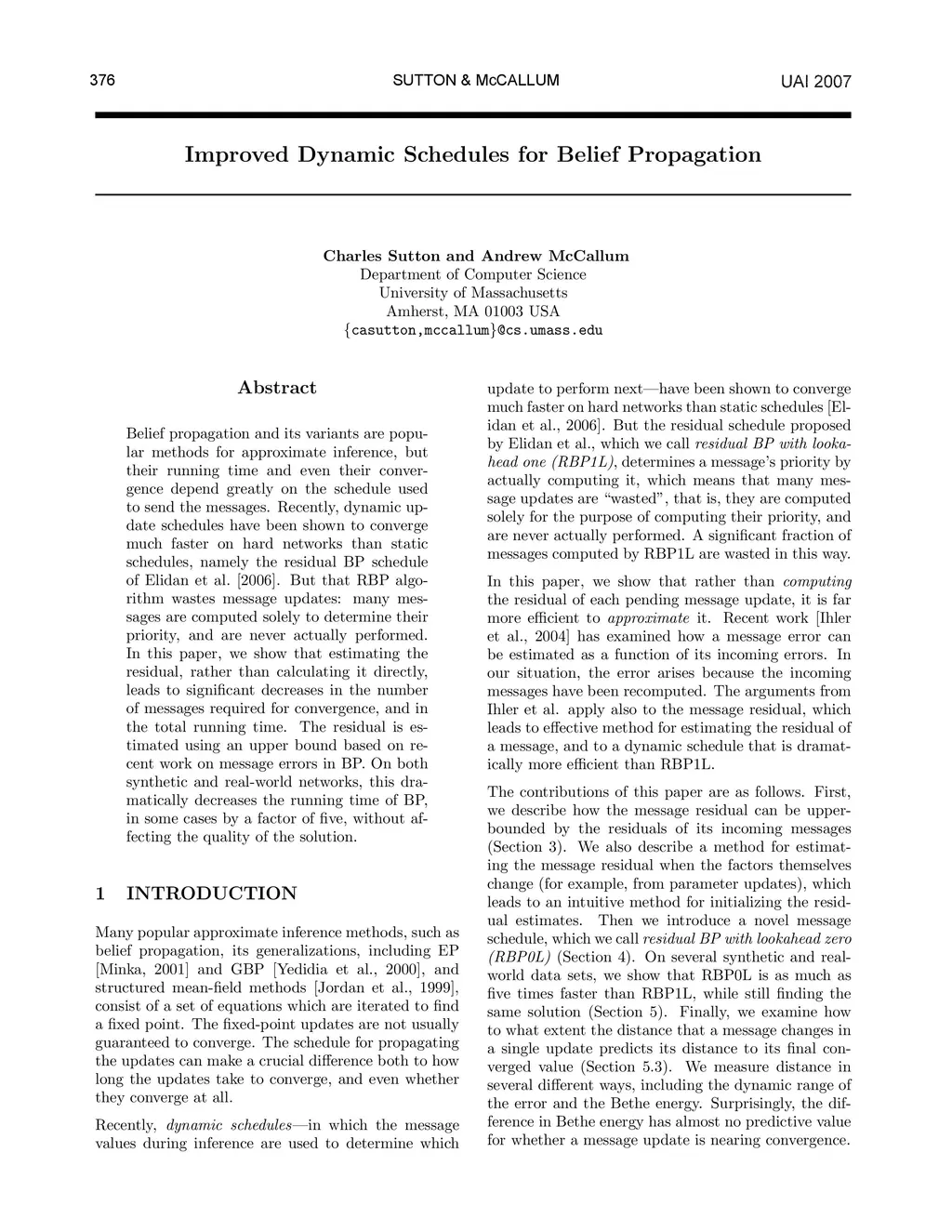 Belief propagation and its variants are popular methods for approximate inference, but their running time and even their convergence depend greatly on the schedule used to send the messages. Recently, dynamic update schedules have been shown to converge much faster on hard networks than static schedules, namely the residual BP schedule of Elidan et al. [2006]. But that RBP algorithm wastes message updates: many messages are computed solely to determine their priority, and are never actually performed. In this paper, we show that estimating the residual, rather than calculating it directly, leads to significant decreases in the number of messages required for convergence, and in the total running time. The residual is estimated using an upper bound based on recent work on message errors in BP. On both synthetic and real-world networks, this dramatically decreases the running time of BP, in some cases by a factor of five, without affecting the quality of the solution.