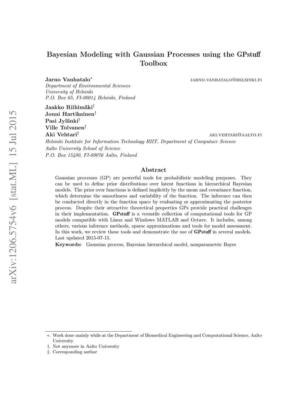 Bayesian Modeling with Gaussian Processes using the GPstuff Toolbox