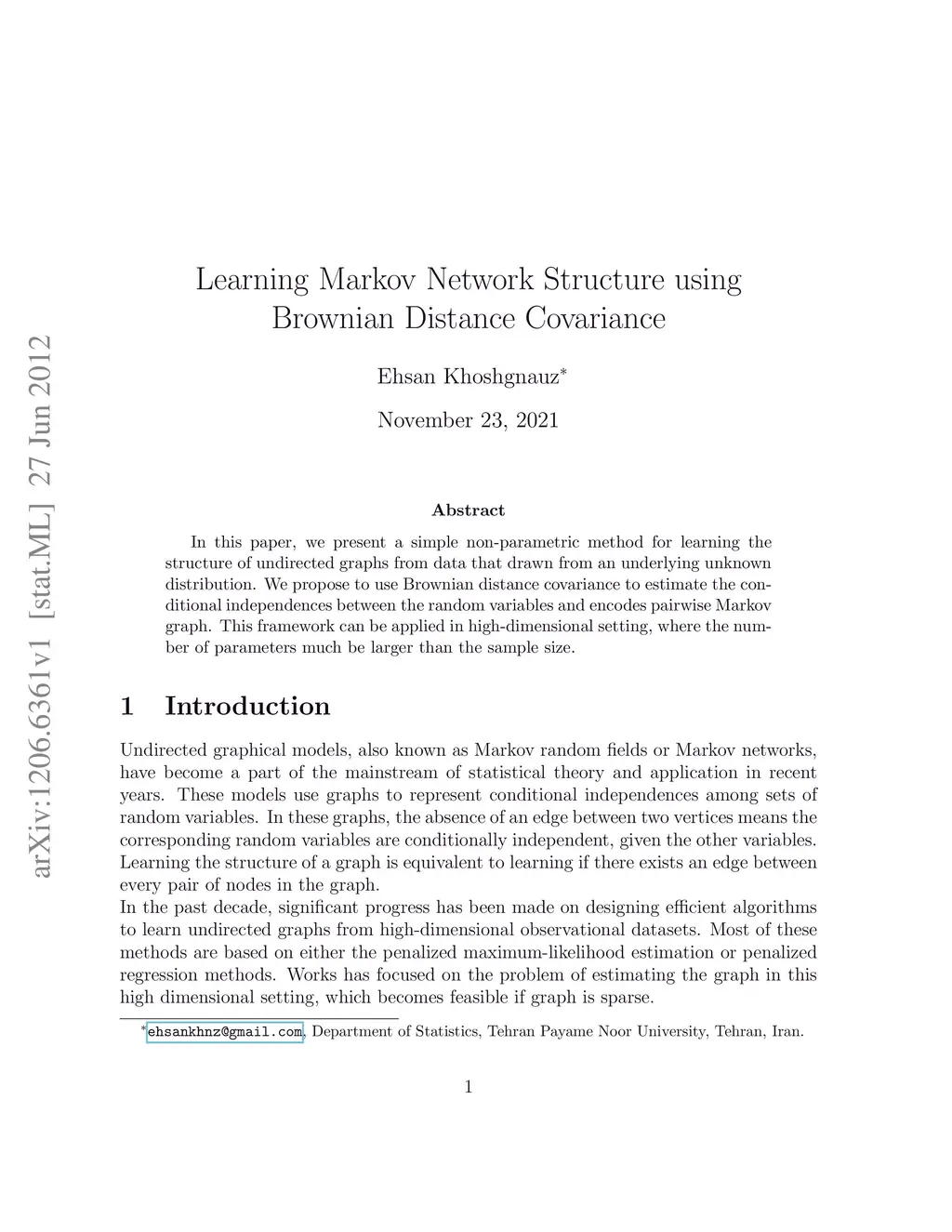 In this paper, we present a simple non-parametric method for learning the structure of undirected graphs from data that drawn from an underlying unknown distribution. We propose to use Brownian distance covariance to estimate the conditional independences between the random variables and encodes pairwise Markov graph. This framework can be applied in high-dimensional setting, where the number of parameters much be larger than the sample size.