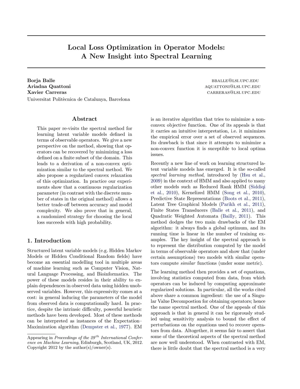 Local Loss Optimization in Operator Models: A New Insight into Spectral