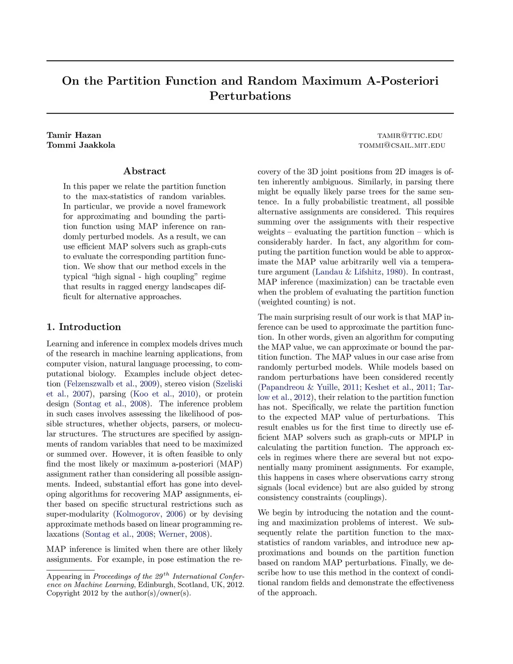 On the Partition Function and Random Maximum A-Posteriori Perturbations