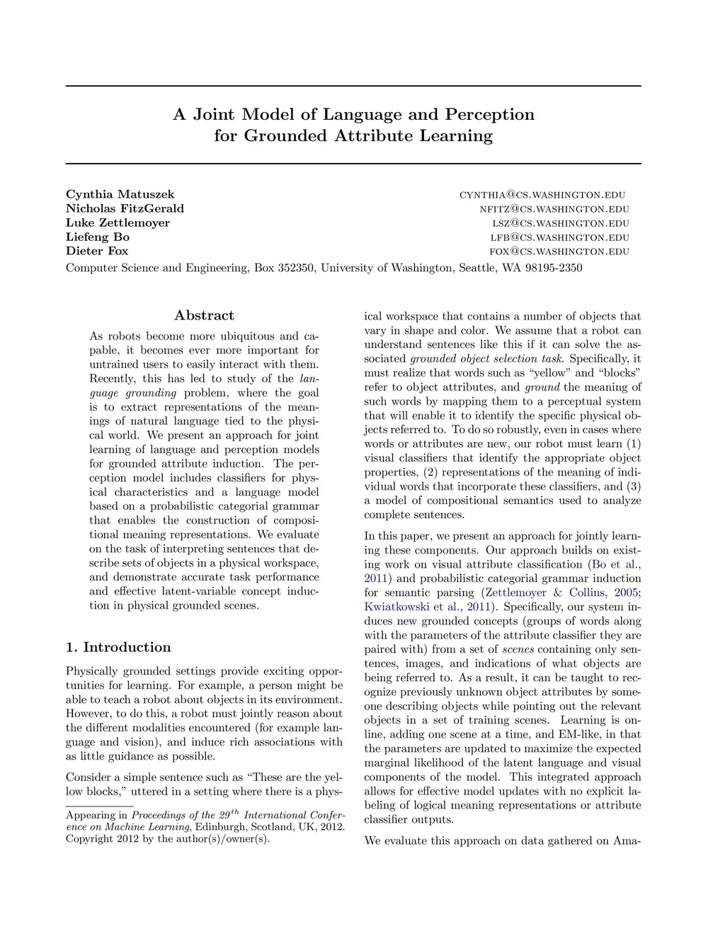 A Joint Model of Language and Perception for Grounded Attribute Learning