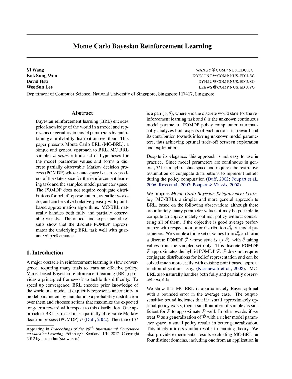 Monte Carlo Bayesian Reinforcement Learning