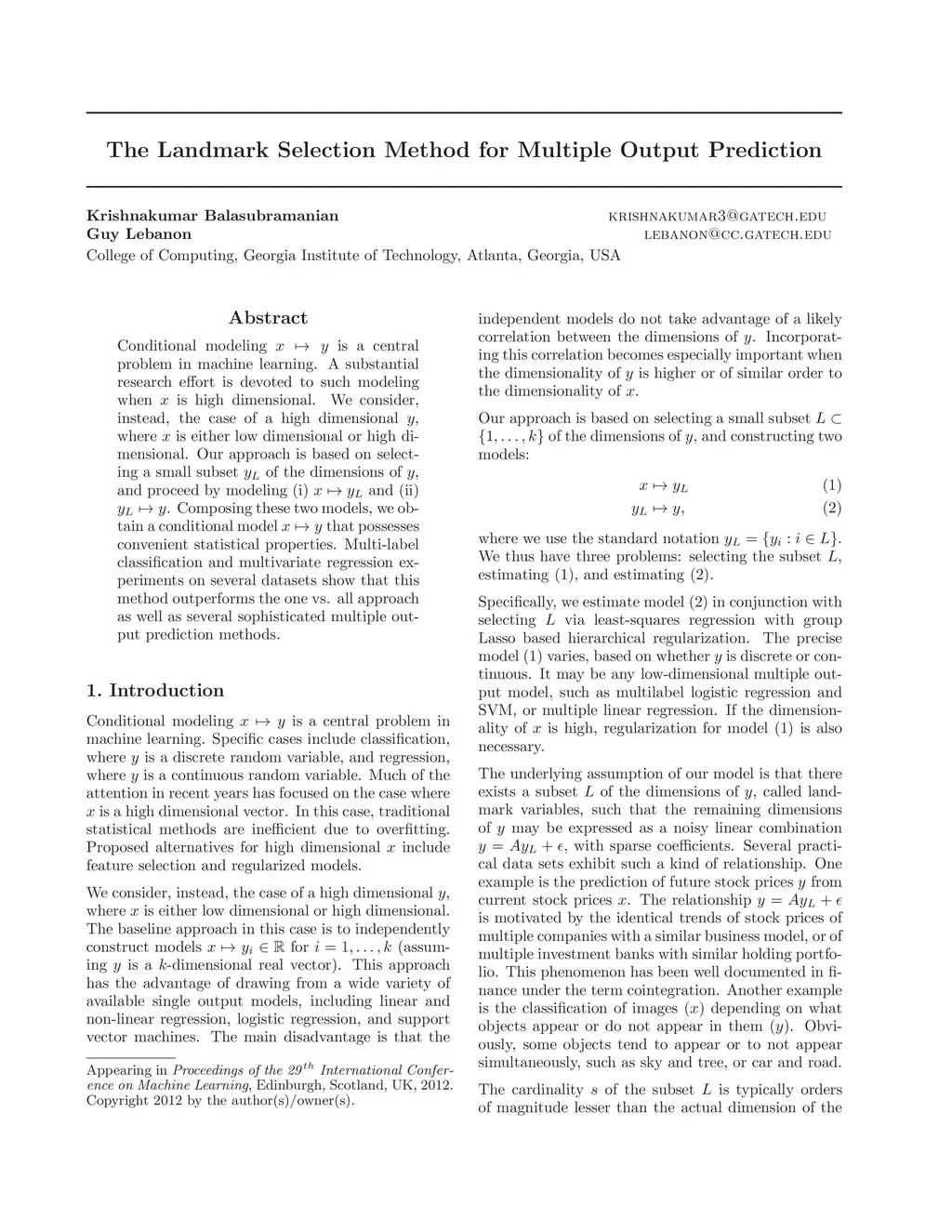 Conditional modeling x \to y is a central problem in machine learning. A substantial research effort is devoted to such modeling when x is high dimensional. We consider, instead, the case of a high dimensional y, where x is either low dimensional or high dimensional. Our approach is based on selecting a small subset y_L of the dimensions of y, and proceed by modeling (i) x \to y_L and (ii) y_L \to y. Composing these two models, we obtain a conditional model x \to y that possesses convenient statistical properties. Multi-label classification and multivariate regression experiments on several datasets show that this model outperforms the one vs. all approach as well as several sophisticated multiple output prediction methods.