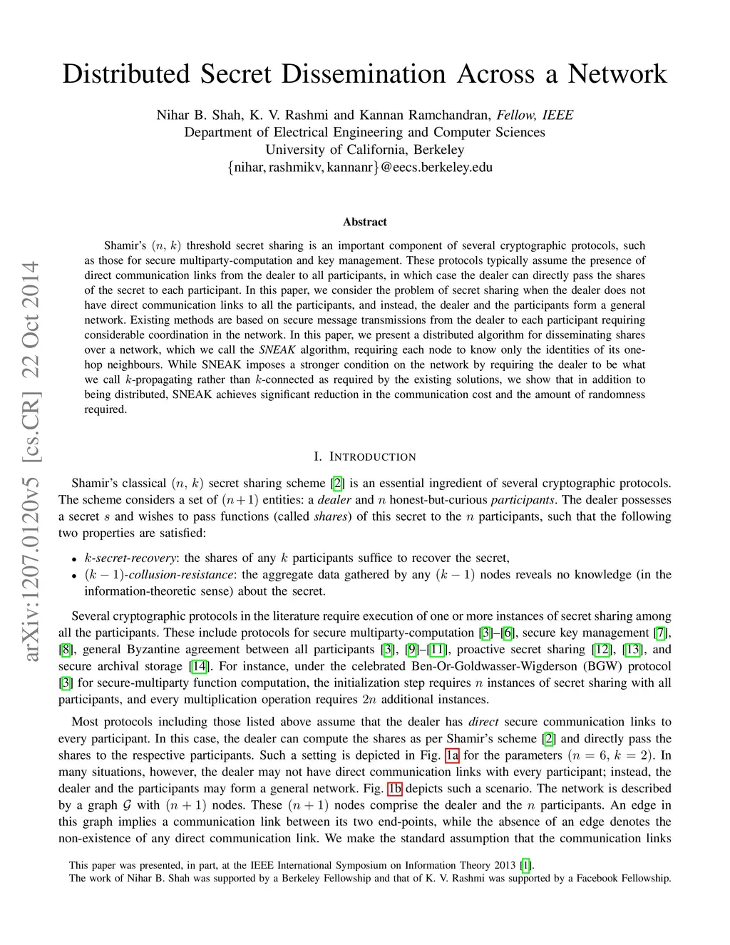 Distributed Secret Dissemination Across a Network