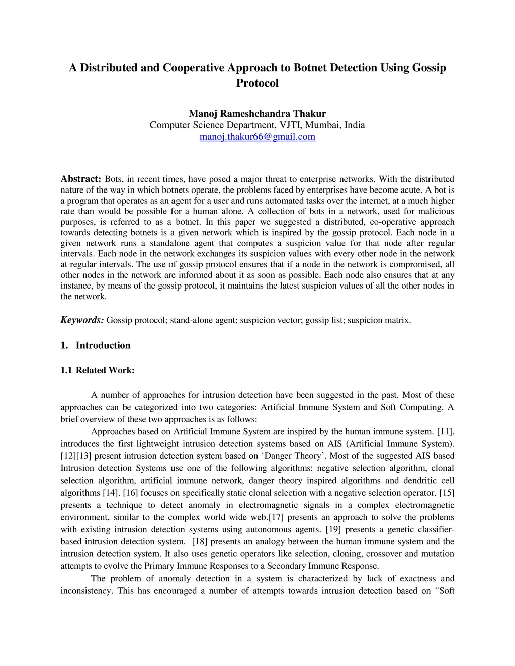 Bots, in recent times, have posed a major threat to enterprise networks. With the distributed nature of the way in which botnets operate, the problems faced by enterprises have become acute. A bot is a program that operates as an agent for a user and runs automated tasks over the internet, at a much higher rate than would be possible for a human alone. A collection of bots in a network, used for malicious purposes, is referred to as a botnet. In this paper we suggested a distributed, co-operative approach towards detecting botnets is a given network which is inspired by the gossip protocol. Each node in a given network runs a standalone agent that computes a suspicion value for that node after regular intervals. Each node in the network exchanges its suspicion values with every other node in the network at regular intervals. The use of gossip protocol ensures that if a node in the network is compromised, all other nodes in the network are informed about it as soon as possible. Each node also ensures that at any instance, by means of the gossip protocol, it maintains the latest suspicion values of all the other nodes in the network.