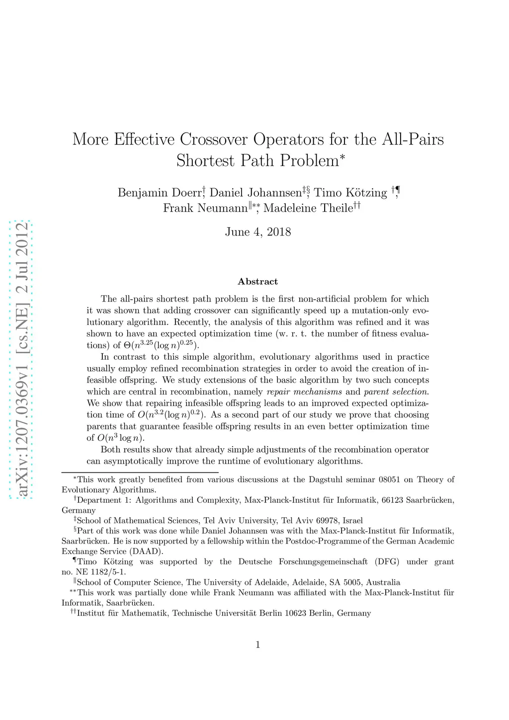 More Effective Crossover Operators for the All-Pairs Shortest Path